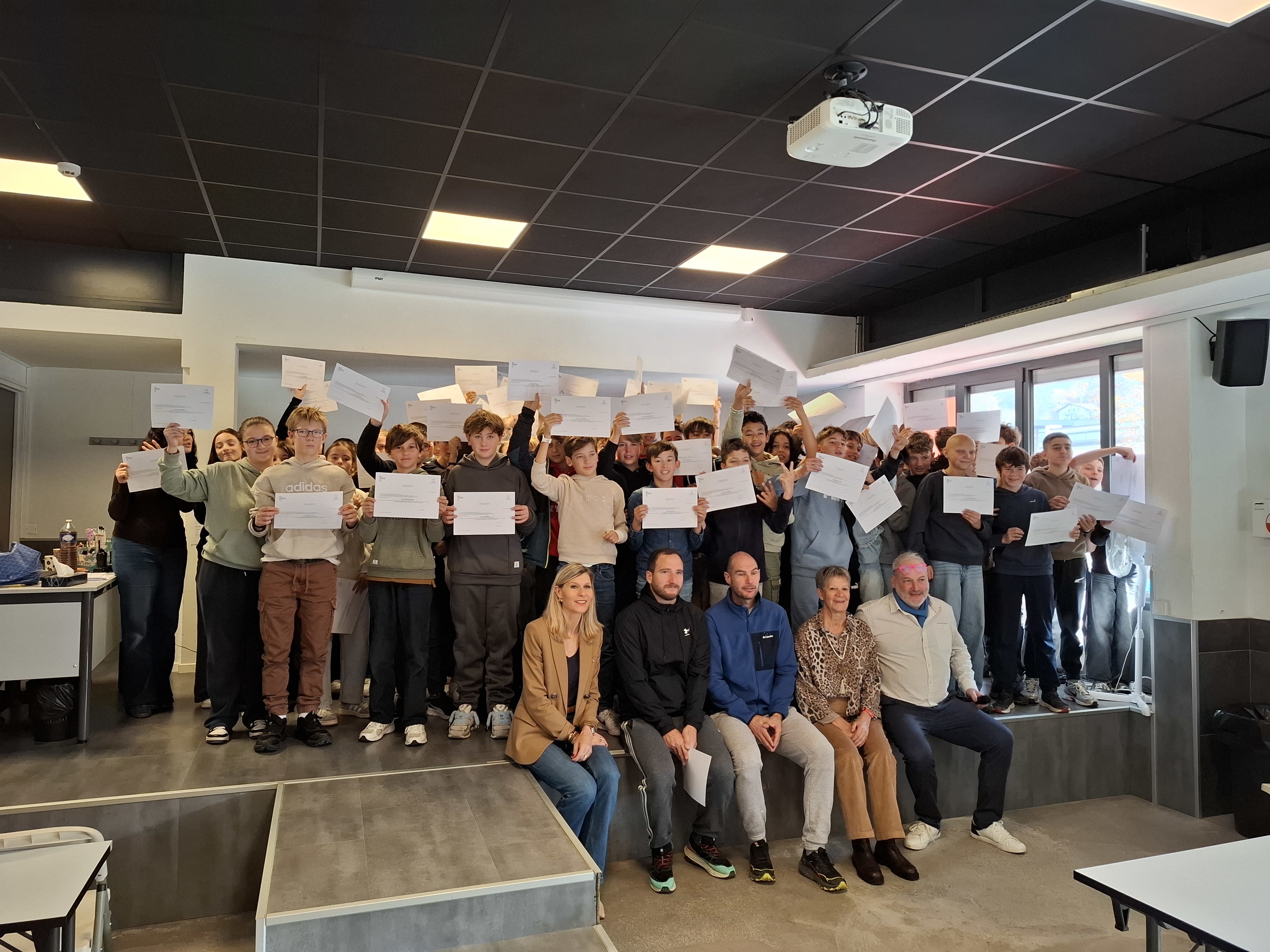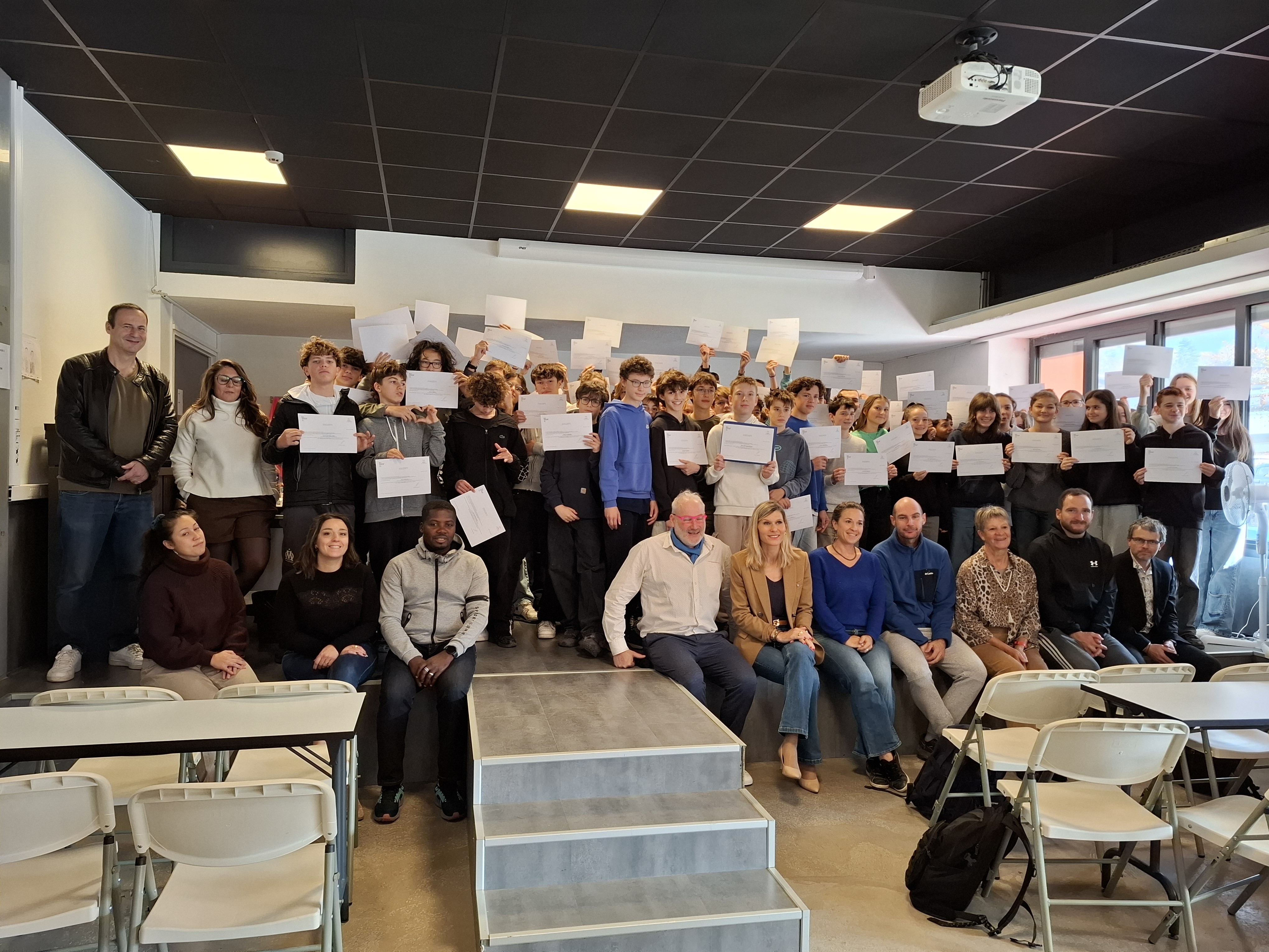 Après avoir été formés aux gestes de premiers secours, grâce à leurs enseignants formateurs, c'est en présence de Madame la Députée Virginie Duby-Muller et de Madame Danielle Thevenoz, adjointe au Maire de Collonges-Sous-Salève, que les élèves de 4ème et de 3ème ont reçu leur premier diplôme officiel.