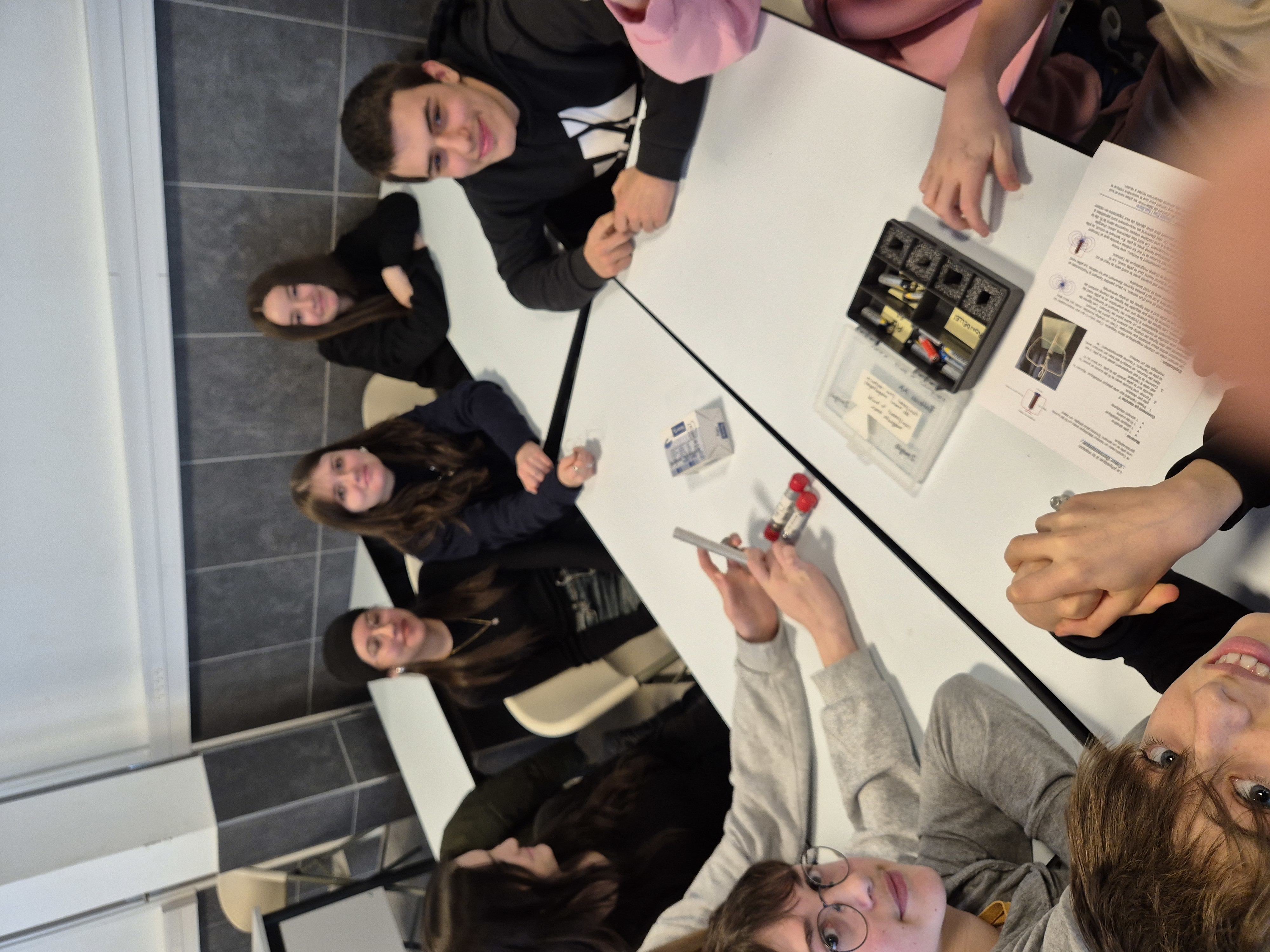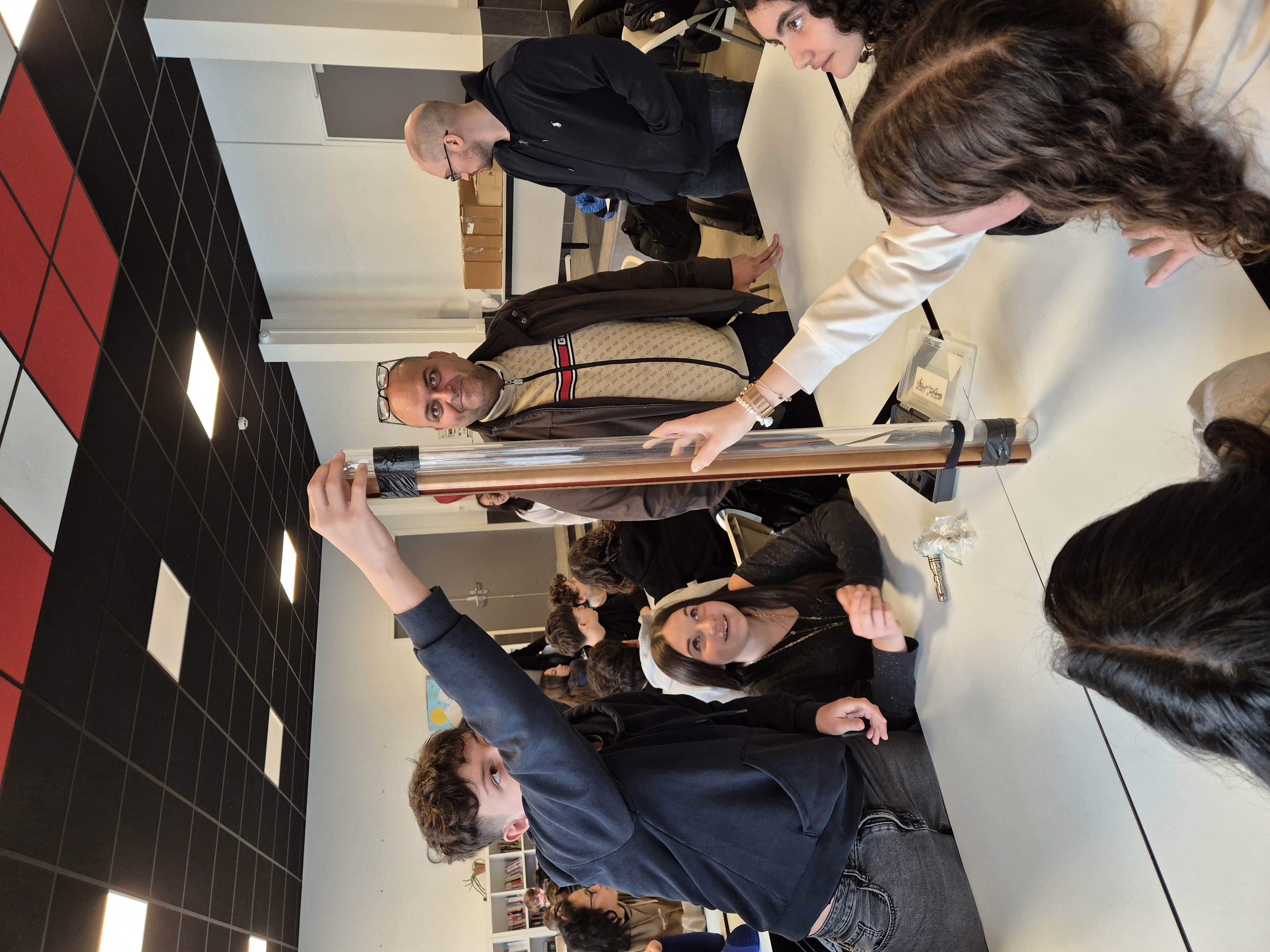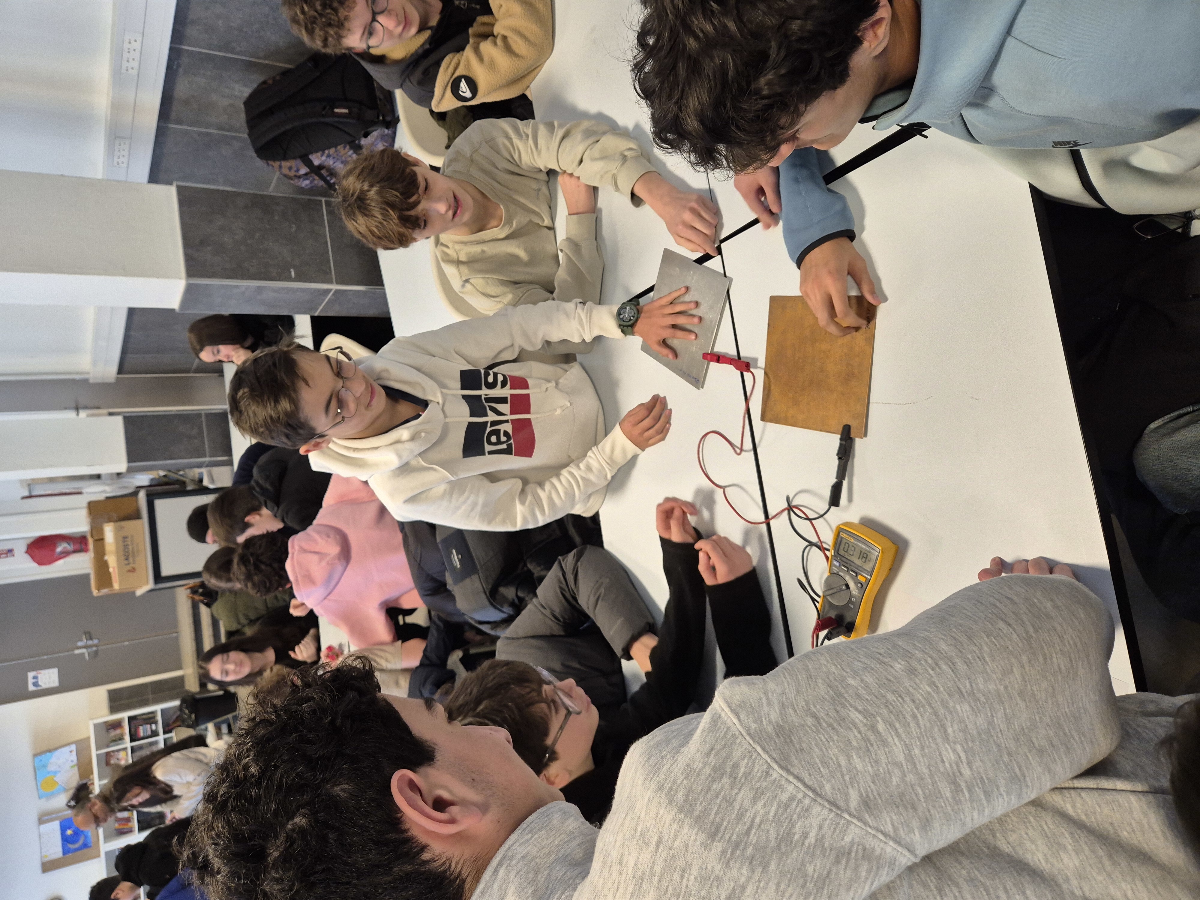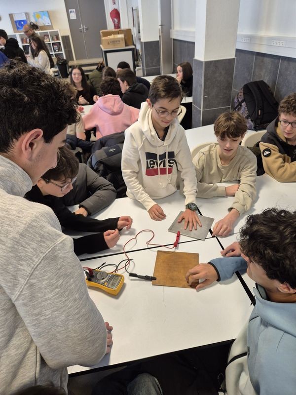 Dans un second temps, les élèves se sont répartis en groupes afin de participer à des expériences de sciences physiques. Ces manipulations ont suscité beaucoup d’enthousiasme et de curiosité, permettant aux élèves d’observer concrètement des phénomènes scientifiques et de mettre en pratique leurs connaissances.