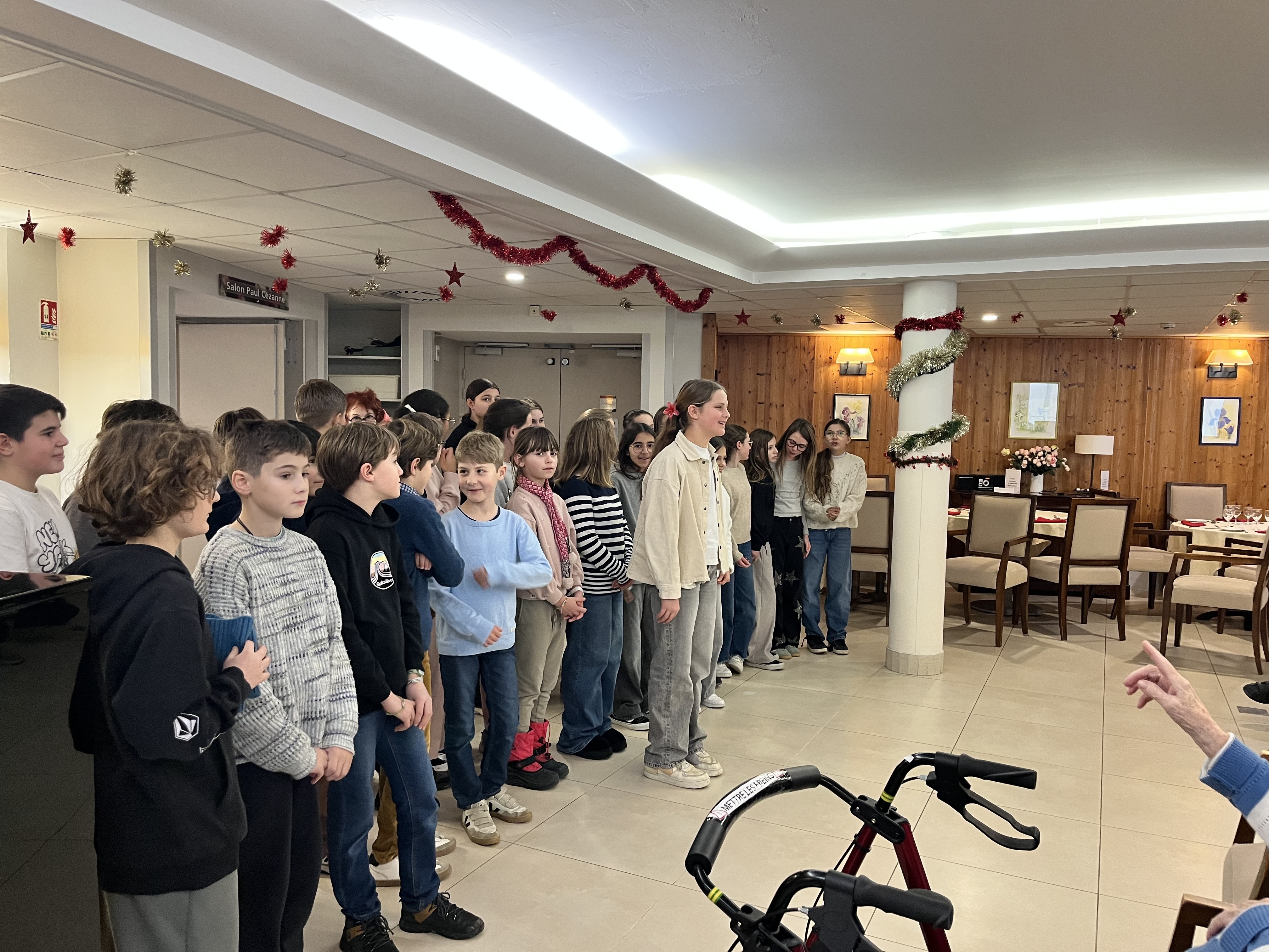 Lors de la première visite, les élèves ont traversé la ville avec enthousiasme pour rejoindre les résidents, installés dans une salle à manger encore décorée aux couleurs de Noël. En raison de la saison grippale, le port du masque et certaines mesures de distanciation étaient nécessaires. L’animatrice de l’établissement a veillé au respect de ces consignes afin que la rencontre se déroule dans les meilleures conditions.