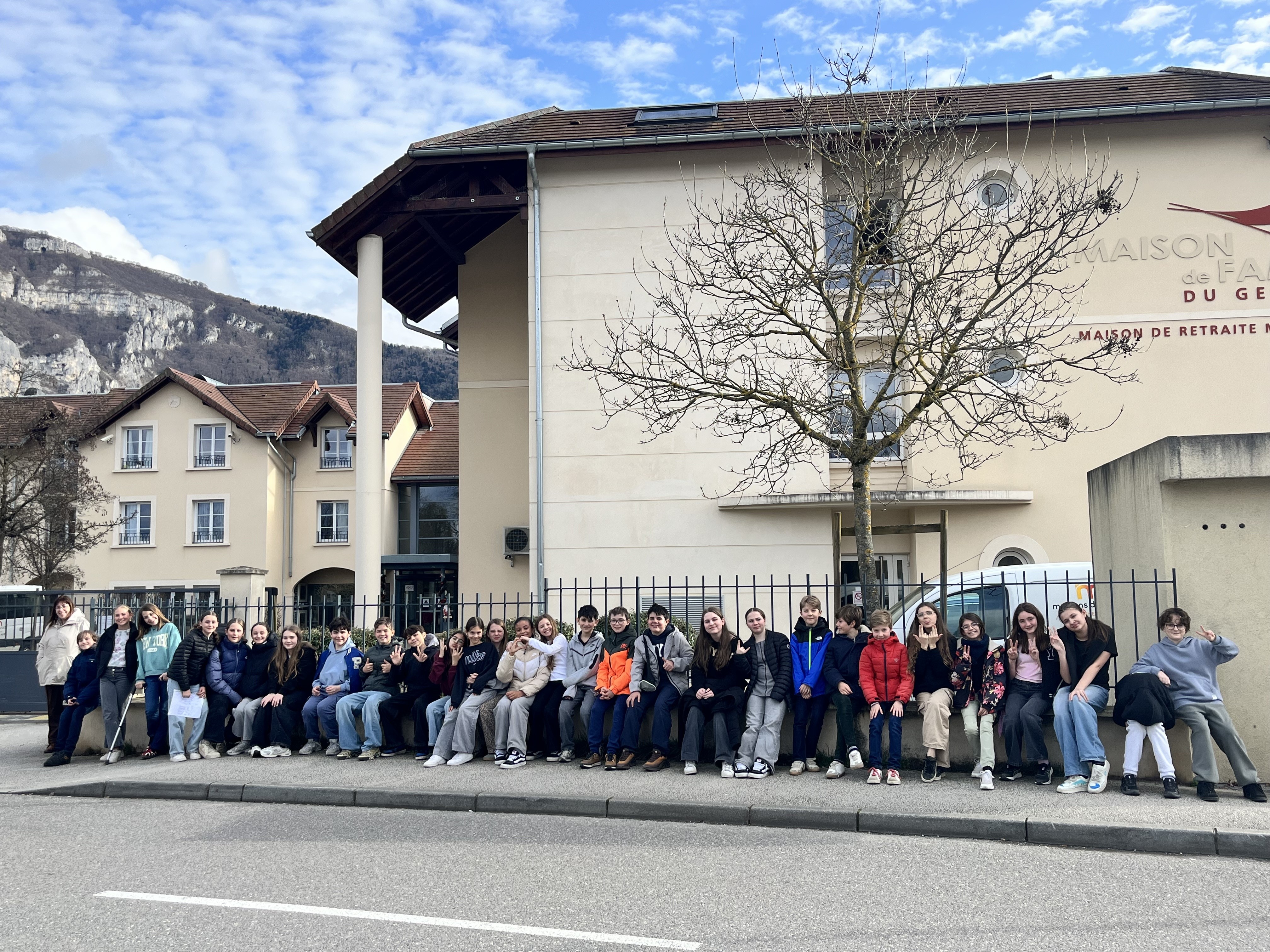 Dans le cadre de leur projet musical « Paroles et chansons d’hier », les élèves de la classe de 6e1 se sont rendus à deux reprises à l’EHPAD de Collonges-sous-Salève afin de partager un moment privilégié avec les résidents.
