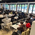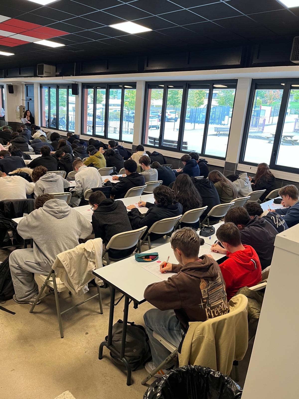 80 élèves de 1ère Bac Pro (toutes sections confondues) se sont retrouvés dans l’espace Saint Vincent pour participer à la dictée. L’expérience, très intéressante, a permis aux élèves de s’investir pour une noble cause et ainsi aider les enfants atteints de leucodystrophie.